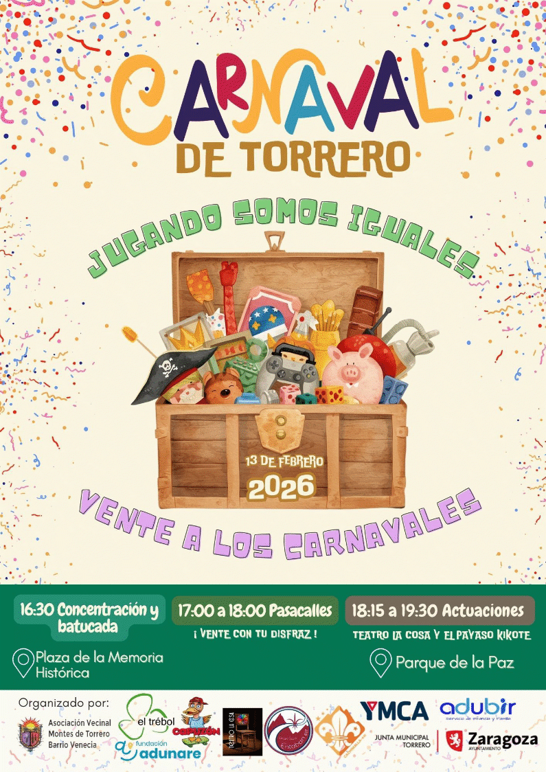 El viernes 13 de Febrero de 2026 se han organizado varias actividades en el barrio con motivo del Carnaval Torrero 2026 “Jugando Somos Iguales – Vente a los Carnavales”.