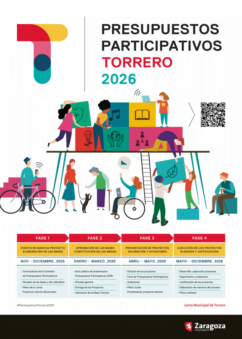 Un nuevo año comienza el proceso de selección de proyectos para los Presupuestos Participativos Torrero 2026. Podéis visitar la página de la web municipal donde detallan todo el proceso. Aquí hacemos un resumen: